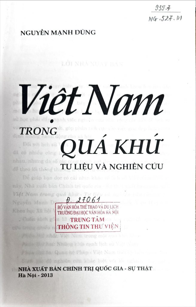 Việt Nam trong quá khứ: Tư liệu và nghiên cứu